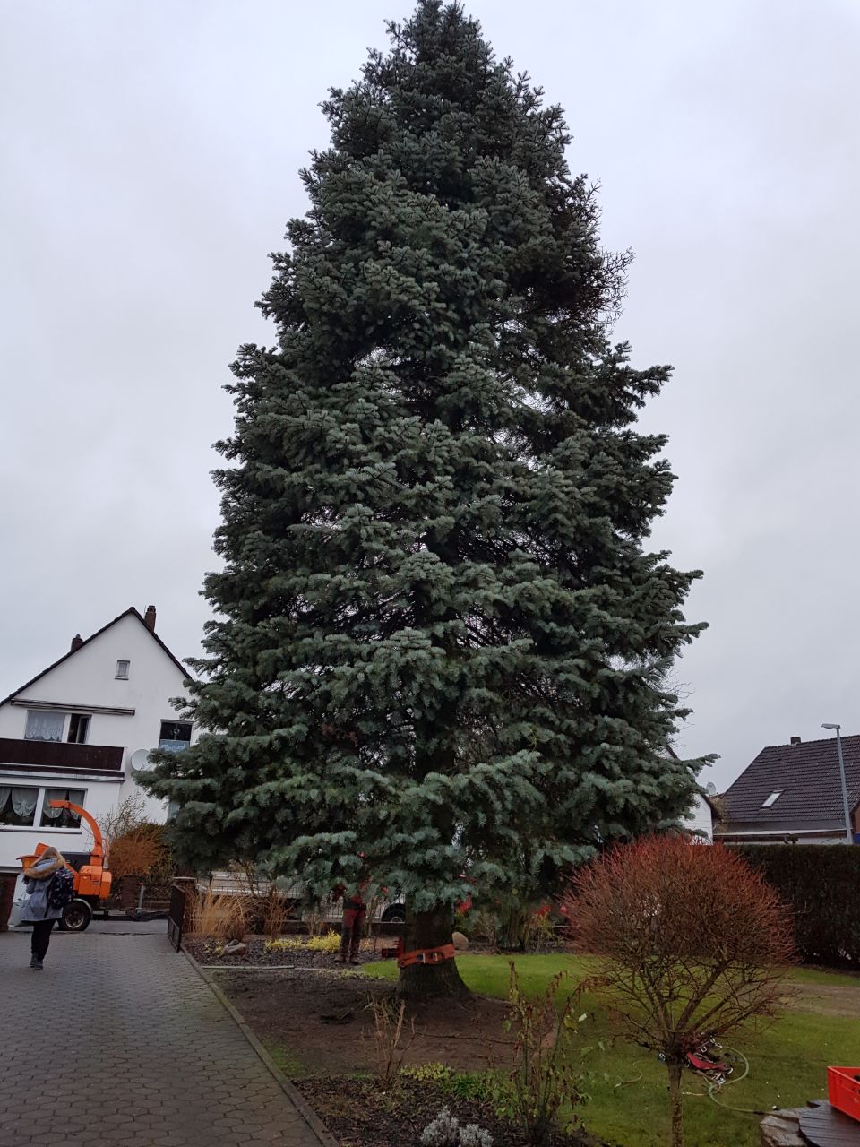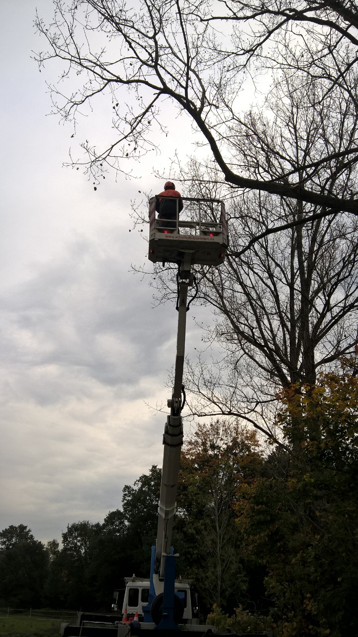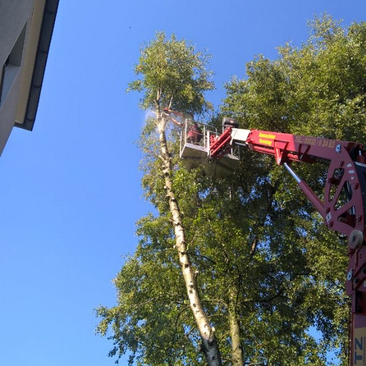 Baumfällungen, Kroneneinkürzungen mit Seilklettertechnik und Hubsteiger.